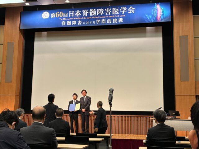 当院の医師が日本脊髄障害医学会にて「学会奨励賞」を受賞しました